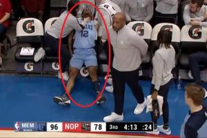 莫蘭特在28日對陣鵜鶘的第三節(jié)繞掩護時右肩與泰斯相撞,他倒地后非常痛苦,之后再未出場。
