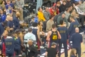 ??巴特勒騎馬射箭轟進首節(jié)超遠壓哨打板三分!笑著指庫里