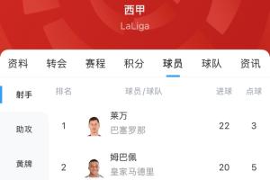 體育資訊03月17日訊 本輪西甲,萊萬和姆巴佩兩名西甲金靴熱門球員雙雙破門,兩人繼續(xù)斷層領(lǐng)跑西甲射手榜。