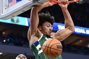 加盟雄鹿后,希姆斯出戰(zhàn)了14場(chǎng)比賽,場(chǎng)均15分鐘得到2.4分4.9籃板0.8助攻。