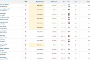 身價此次更新變化球員: