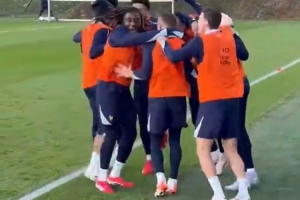 體育資訊3月19日訊 法國隊官推今日曬出視頻,球員們在訓(xùn)練中開心地慶祝制勝進(jìn)球。