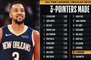 截至發(fā)稿,CJ命中3記三分,生涯三分命中數(shù)1983,超越諾維茨基升至NBA歷史第19位。