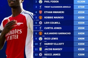 體育資訊3月20日訊 德轉(zhuǎn)此前更新了英超球員身價(jià),并盤點(diǎn)了本賽季出自球隊(duì)青訓(xùn)的球員中身價(jià)最高榜單,其中薩卡居首,福登次席,具體如下: