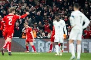 體育資訊3月21日訊?歐國聯(lián)1/4決賽首回合,丹麥1-0擊敗葡萄牙。第79分鐘,奧爾森跟進橫敲門前,霍伊倫推射輕松將球打進,隨后模仿C羅Siuuu慶祝。