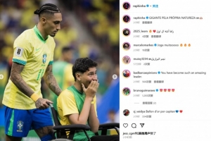 拉菲尼亞也通過社媒曬出自己賽前為殘障球迷手推輪椅的照片,并配文:“他們在心靈層面是巨人。”