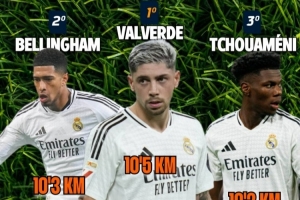 皇馬本賽季隊(duì)內(nèi)場(chǎng)均跑動(dòng)距離top3↓