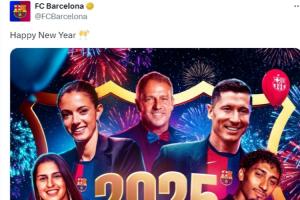 體育資訊01月01日訊 巴薩官方在當(dāng)?shù)貢r間0點發(fā)布了2025新年祝福海報,不過這個時間點,同時也是奧爾莫注冊的截止時間,巴薩官方并沒有提到這件事。