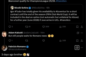 有球迷在評(píng)論區(qū)說(shuō)道:但人們還要等待羅馬諾發(fā)新聞。這似乎是在質(zhì)疑羅馬諾報(bào)道不夠有時(shí)效性。羅馬諾則回復(fù)他:三天前我就發(fā)了,兄弟。