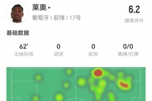 體育資訊3月24日訊 葡萄牙在歐國(guó)聯(lián)八強(qiáng)戰(zhàn)次回合再戰(zhàn)丹麥,萊奧本場(chǎng)數(shù)據(jù)如下: