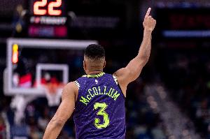 此役鵜鶘后衛(wèi)麥科勒姆火力全開,打了36分鐘28投16中,三分12中5、罰球5中3空砍全場最高40分外加5籃板7助攻1搶斷,正負值+3。