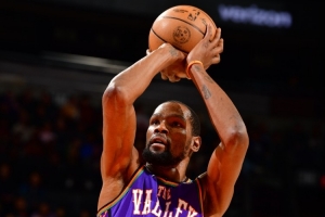 本賽季杜蘭特場(chǎng)均出手6.0個(gè)三分,17-18賽季以來(lái)最高,命中率41.7%。