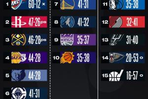 西部排名情況:湖人重回第四,快船升至第六,勇士掉進附加賽區(qū)域的第七!太陽輸球,戰(zhàn)績跟身后的獨行俠持平了!