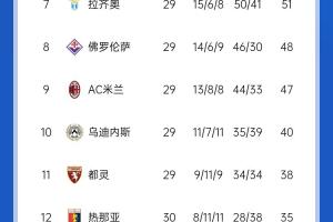積分榜上,贏球的尤文仍是第5,距第4名博洛尼亞1分。羅馬暫升第6,距離博洛尼亞4分。