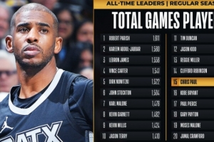 這是保羅常規(guī)賽生涯第1347場(chǎng)比賽,超越科比,上升至NBA歷史第十五位,排在他前面的是克里弗德-羅賓遜(1380場(chǎng))。