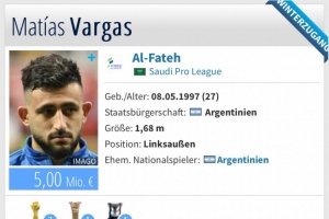體育資訊1月2日訊?根據(jù)德國轉會市場網(wǎng)站信息顯示,巴爾加斯已經(jīng)加盟了沙特球隊哈薩征服。