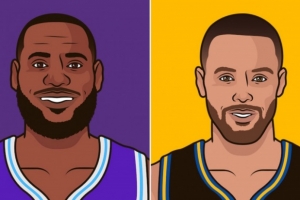 據(jù)統(tǒng)計,在過去8次交手中(湖人4-4勇士),詹姆斯場均得到33.8分9.4籃板10助攻,三項命中率59/57/84%;庫里場均32.1分3.6籃板6.6助攻,三項命中率 47/42/90%。