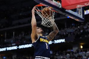此役,掘金前鋒小邁克爾-波特出戰(zhàn)41分鐘,投籃15中9,三分7中3,罰球2中2,得到23分9籃板2助攻1蓋帽。