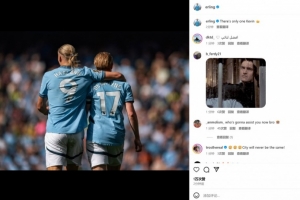 體育資訊4月5日訊 德布勞內(nèi)宣布將在本賽季結(jié)束后離開(kāi)曼城,哈蘭德也在個(gè)人社媒曬出與德布勞內(nèi)的合影,配文寫(xiě)道:“世上只有一個(gè)凱文??”