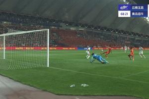 比賽第68分鐘,恩里克打門被撲,侯永永補射打飛&懊惱趴地,場上比分玉昆0-0海牛。