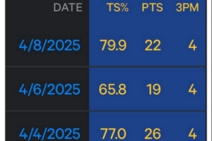 賽后,勇士自媒體WarriorsMuse曬出一個(gè)球員的近4場(chǎng)進(jìn)攻端數(shù)據(jù)表,可以看到他連續(xù)4場(chǎng)轟進(jìn)4+三分。自媒體發(fā)問:“猜猜這是誰?”