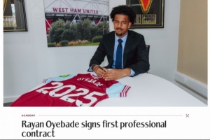 體育資訊4月9日訊 西漢姆官宣,與拉揚(yáng)-奧耶巴德簽下首份職業(yè)合同。
