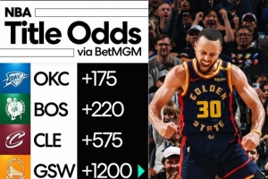 體育資訊4月10日訊 今天,博彩網(wǎng)站更新了本賽季的奪冠賠率,雷霆最被看好,詳情如下: