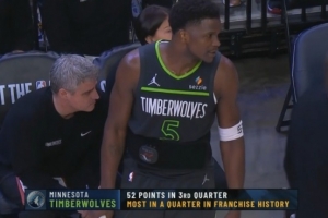 52分也是森林狼隊(duì)史單節(jié)新高得分紀(jì)錄(此前為47分)。