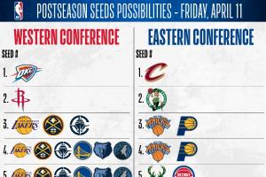 NBA常規(guī)賽僅剩兩個(gè)比賽日(13日沒比賽),目前季后賽+附加賽20隊(duì)的種子排名僅確定5隊(duì):