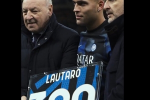勞塔羅此前在歐冠對陣?yán)瘴謳焐瓡r(shí)已經(jīng)迎來了在國米的第300場正式比賽,他在今天賽前從國米主席馬洛塔和總監(jiān)奧西利奧手中收到了300場紀(jì)念球衣。