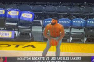 體育資訊4月12日訊 今日湖人主場(chǎng)迎戰(zhàn)火箭,詹姆斯賽前打赤膊熱身。