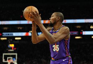 首節(jié)比賽,太陽球星杜蘭特表現(xiàn)不俗,在前三投全失的情況下后面五投全中,強行拉回命中率,打滿12分鐘的情況下,投籃8中5,三分球4中1,罰球4中3,拿到14分1籃板3助攻1蓋帽的數(shù)據(jù),正負(fù)值+7。
