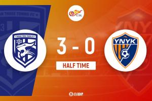 上半場(chǎng)比賽結(jié)束,武漢三鎮(zhèn)主場(chǎng)暫時(shí)3-0領(lǐng)先云南玉昆。