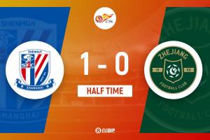 上半場(chǎng)補(bǔ)時(shí)1分鐘,申花1-0浙江隊(duì)。