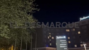 西班牙媒體El Desmarque曬出視頻,多特球迷在巴薩下榻酒店外燃放煙花。