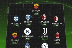 中場:蘇萊(羅馬)、麥克托米奈(那不勒斯)、伊爾迪茲(尤文圖斯)、萊奧(AC米蘭)