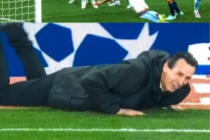 體育資訊4月16日訊?維拉總比分4-5不敵巴黎,遺憾無緣歐冠4強。比賽第70分鐘,孔薩錯失了一個頭球良機,埃梅里在場邊都趴地上了!