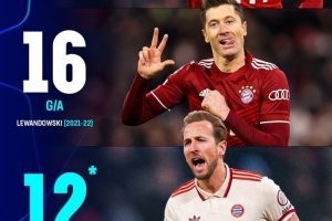 據(jù)媒體統(tǒng)計,凱恩本賽季歐冠參與12粒進球,拜仁隊史單賽季歐冠參與進球數(shù)量僅次于萊萬,萊萬19-20賽季參與20球、21-22賽季參與16球。
