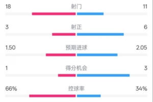 控球率66%-34%