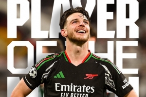 阿森納官方更新社媒動(dòng)態(tài),曬出為賴斯制作的海報(bào),宣布他當(dāng)選此役球迷票選阿森納隊(duì)內(nèi)最佳球員。