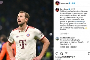 體育資訊4月17日訊 歐冠1/4決賽,拜仁總比分3-4不敵國(guó)米出局,不久前,拜仁前鋒凱恩更新了社交媒體。