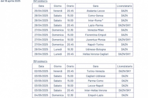 體育資訊4月18日訊 意甲官方更新社媒動(dòng)態(tài),公布了意甲第34輪、第35輪比賽的開球時(shí)間(北京時(shí)間)。