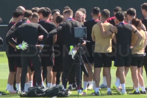 在特爾施特根的拉扯下,伊尼亞基不情愿地向前挪了兩步,勉強(qiáng)靠近弗里克所在區(qū)域。開放的前15分鐘訓(xùn)練畫面捕捉到了這一幕。訓(xùn)話結(jié)束后,特爾施特根主動(dòng)與什琴斯尼交談,而佩尼亞則留在原地與弗里克團(tuán)隊(duì)的一名成員對(duì)話。
