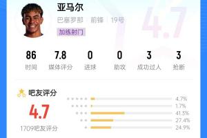 吧友給亞馬爾僅打出4.7分,吧友熱議: