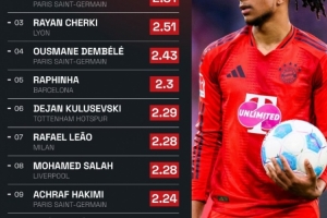 1、奧利塞(拜仁):2.81次