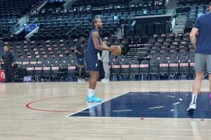 隨隊(duì)記者Law Murray曬照表示小卡來(lái)到球場(chǎng)開始熱身。