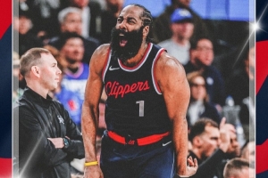 賽后快船官方贏球海報(bào)封面人物給到了哈登。