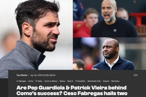 體育資訊4月26日訊 意甲第34輪,法布雷加斯執(zhí)教的科莫將在主場對陣維埃拉執(zhí)教的熱那亞。賽前法布雷加斯被問到了關(guān)于足球榜樣的話題。