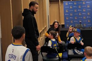 對于自己沒能上場,庫里感到些許愧疚;因此,他在賽前就邀請了一些客場的小球迷,約定好在賽后去到媒體室集合互動(dòng)。