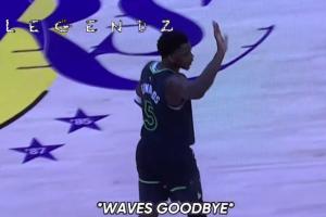 朝湖人球迷揮手拜拜,大聲喊耶耶耶~